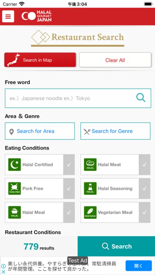 - You can search by combining pictograms such as "halal-certified" and "does not provide any food that uses pork,” etc.