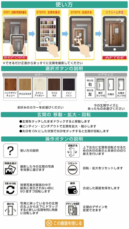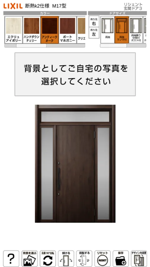 自宅の玄関をリフォームしたらどんな風になるのか、簡単にシミュレーションすることができます。