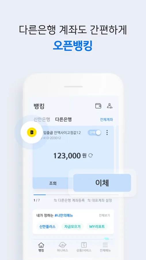 ▶ 다른 은행 계좌를 통한 이체부터 상품신규까지 한번에
