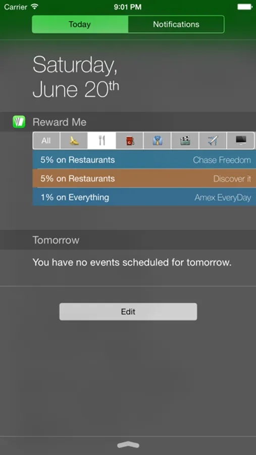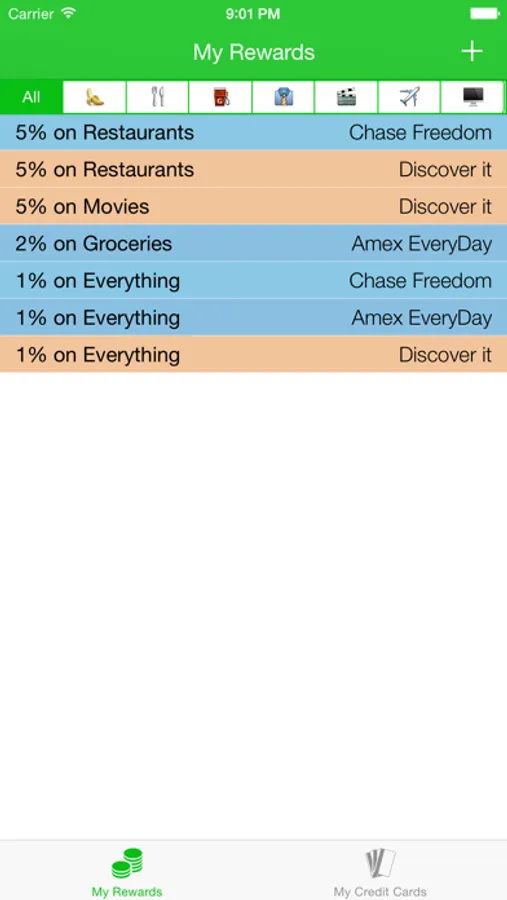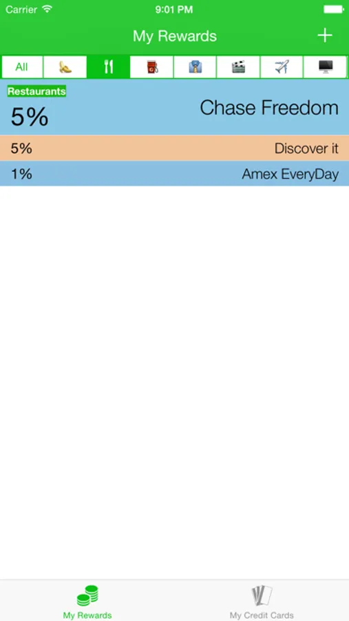 Discover which cards will get you the highest reward with Reward Me. Add your credit cards and then see the cards ranked by reward category from the Today view. Reward categories include: