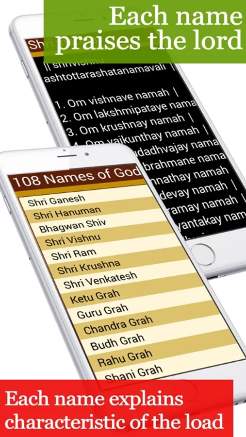 This app contains “108 names” of hindu god & godesses. 108 names of god is a Stotra and is also known as “Ashtottarshat Namavali”. This app is a single solution for all those devotees who love to or sing regularly 108 names of god.