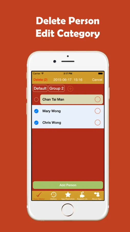 - Add/ delete person: custom and unlimited name list