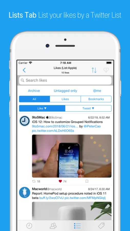 - archive your likes to make them disappear from your likes list without unliking them if, for example, you liked them just for notifying the tweeters that you had read them,