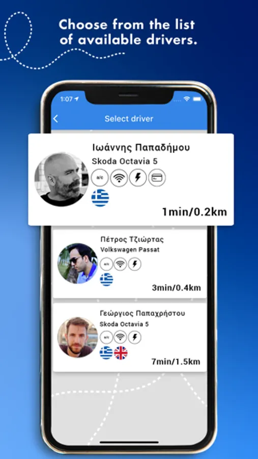 You can call for the driver of your choice based on the following criteria: