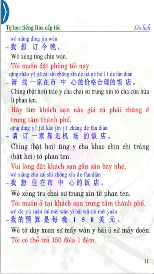 Quyển sách “自我学习汉语快速 (Tự học tiếng Hoa cấp tốc – Tiếng Hoa Du lịch (Travel Chinese))” gồm 114 trang được thực hiện theo tiêu chí phiên âm theo cách đọc của người Việt và dùng để “Học tiếng Hoa mọi lúc mọi nơi” khi trong tay có chiếc điện thoại thông minh. Trong quá trình biên soạn không khó tránh khỏi những sai sót ngoài mong muốn, hy vọng sự đóng góp quý báu từ các bạn giúp quyển sách ngày càng hoàn chỉnh hơn. Xin chân thành cảm ơn và chúc các bạn học tập hiệu quả! Những tiện ích khi bạn sử dụng Sách Thông Minh - SmartBooks của chúng tôi: Sách được tích hợp âm thanh (audio) vào trong sách, đánh dấu từng câu khi đọc, khi cần nghe lại câu vừa mới đọc hay câu nào đó thì bạn chỉ cần chạm tay vào câu đó thì sẽ phát âm thanh; Ngoài ra SmartBooks còn có tính năng thu lại giọng đọc (giọng của bạn tập đọc câu vừa học, vừa nghe) của bạn bằng cách nhấn vào nút Recorder (icon Micro), khi bạn nhấn vào icon “Headphone” “Nghe và viết”, xuất hiện màn hình có rất nhiều tính năng giúp bạn nghe và viết lại câu vừa nghe bằng phím hay bằng tay,… Sách được thiết kế để sử dụng mọi lúc mọi nơi khi trong tay bạn có chiếc Smart Phone. Đây là một bước đột phá của chúng tôi trong thời đại công nghệ số nó sẽ giúp các bạn rất nhiều trong việc học và đọc sách.