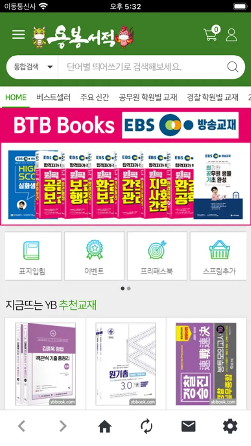 공무원,교원임용,자격증,어학,컴퓨터,취업서,일반서적을 판매하는 용봉서적의 모바일앱입니다.