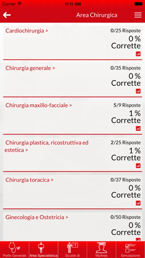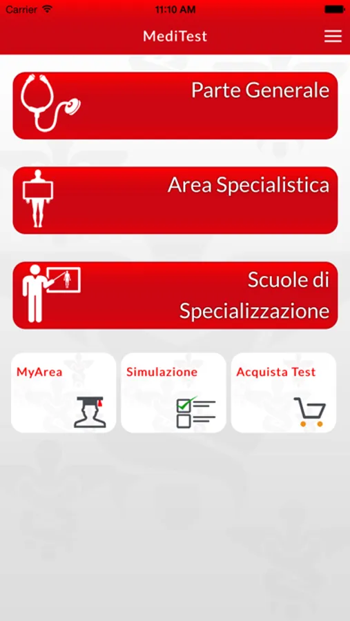 Oltre a una parte generale e alle aree specialistiche, sono disponibili test dedicati a ciascuna Scuola di Specializzazione e la possibilità di eseguire la simulazione di una vera prova d'esame