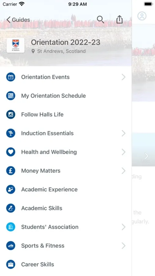 The University of St Andrews Orientation Guide provides you with all the information you need to navigate through your first week in St Andrews. The app contains the University’s Orientation programme along with full details of Freshers’ Week, organised by the Students’ Association. With a comprehensive calendar of events, handy maps and must-do lists, as well as links to social media and useful resources, the app will guide you through the matriculation process, as well as help you feel at home and make the most of your new surroundings.