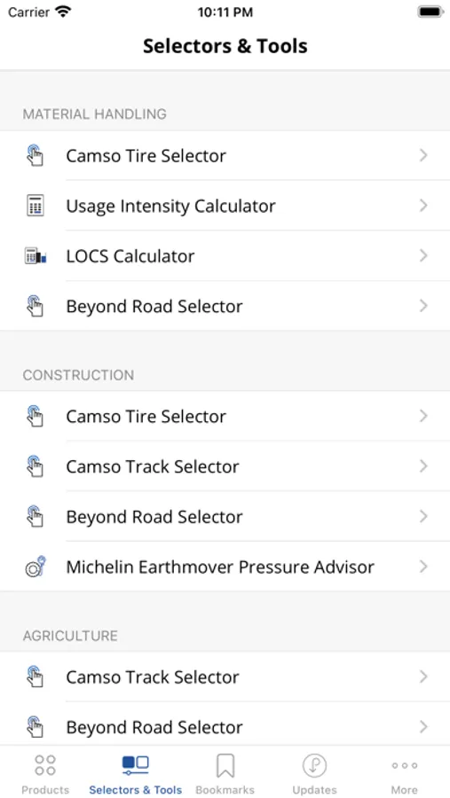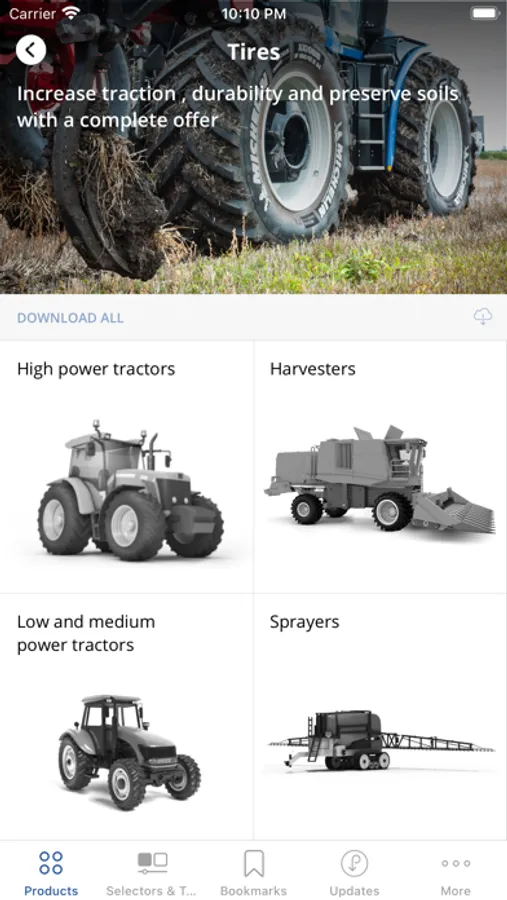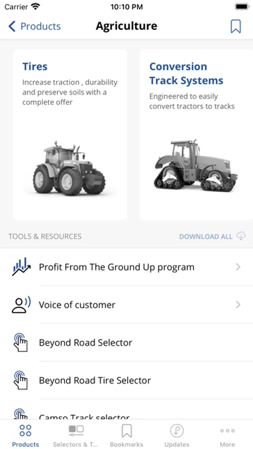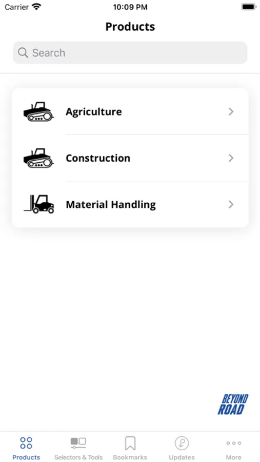 The Beyond Road Connect application is dedicated to the off-road mobility market from Michelin. It was developed as a field guide for our commercial representatives and partners to navigate the subtleties of tires, tracks and track systems for industries such as agriculture, construction and material handling.