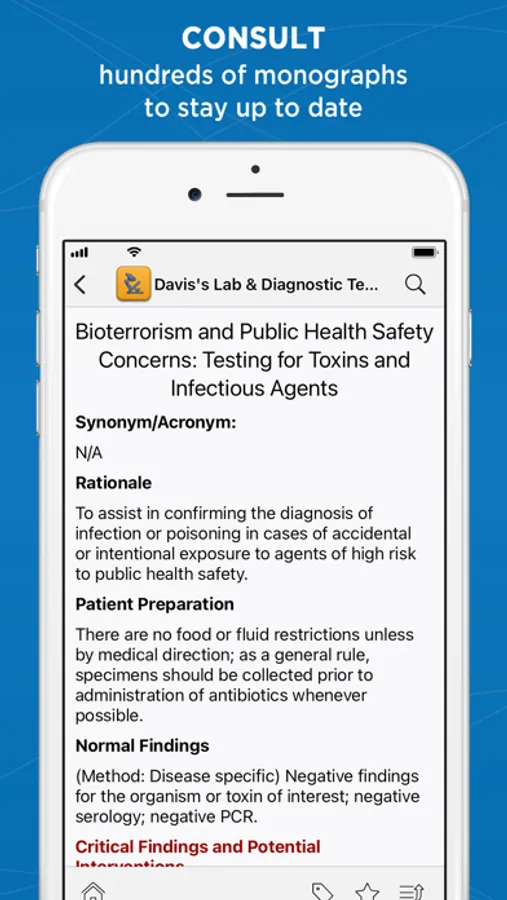 • Up-to-date monographs of over 400 laboratory and diagnostic tests