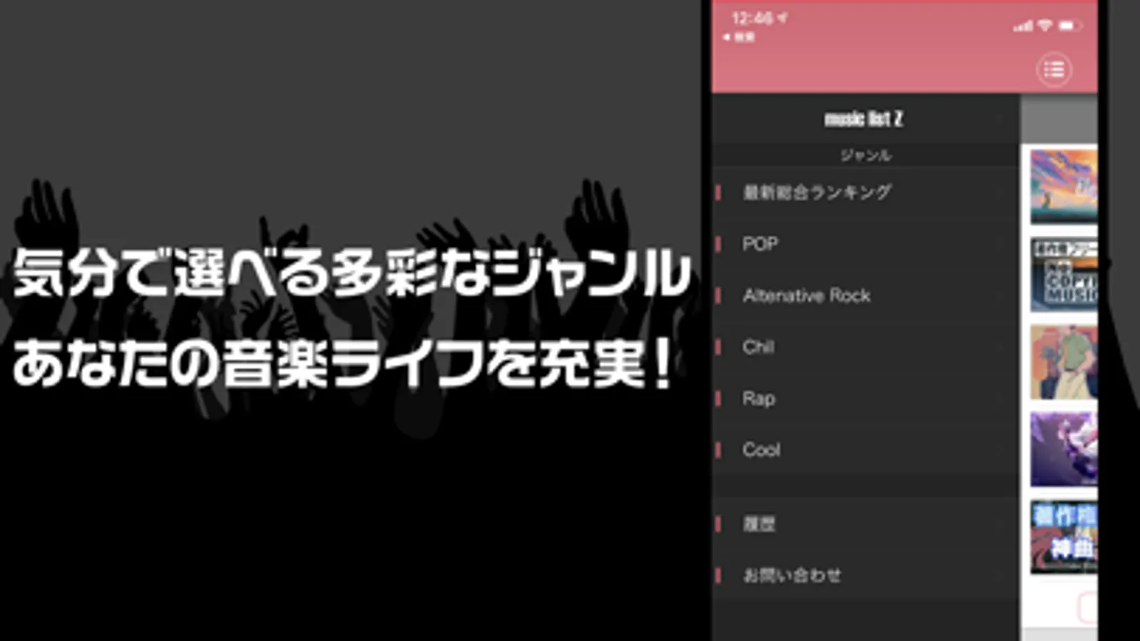 好きなジャンルから曲を選択することが出来、自分だけのプレイリストも作成可能。