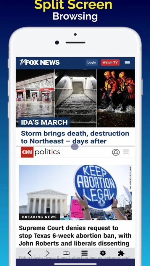 This is the perfect iPhone split screen app with split screen multitasking browser for your large screen iPhone Pro, iPhone Pro Max, 12, 11, etc. DuMore brings split screen multi tasking and split view for all iPads, old and new. You don't have to switch between two apps when you can view two things simultaneously. This is limited to apps that have a website like facebook and twitter. You can also resize the two split view windows or close one split screen tab for an edge-to-edge full screen view of your favorite websites and videos. iOS Limitations Apply. Some web apps are not compatible and/or blocked in third party apps like this one.