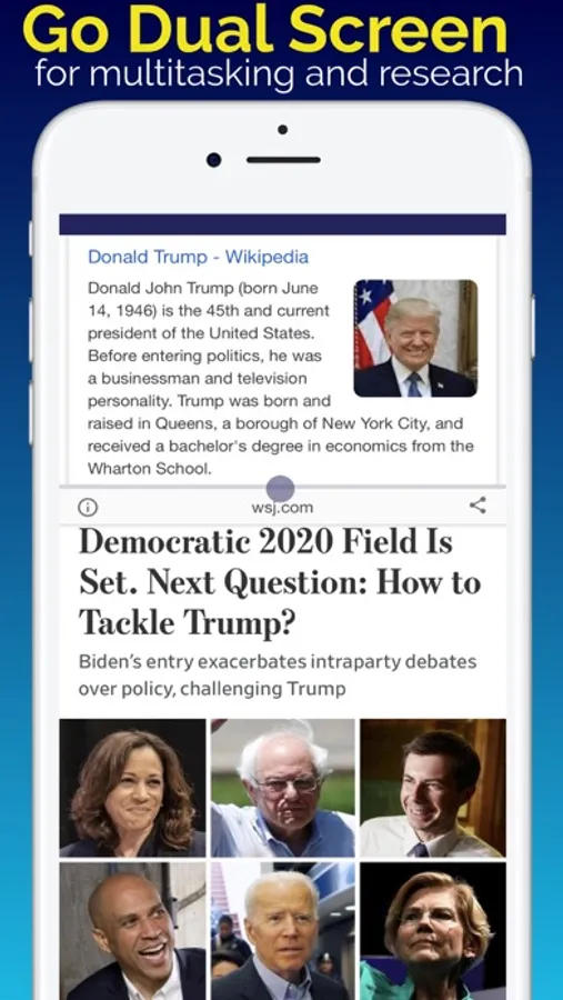 Ranked #1 iPhone & iPad Utility App in 50+ Countries, Split Screen Multitasking app DuMore also ranked Top 10 in around 100 countries including USA, China & Japan, Top 25 in 84 countries and Top 100 in several more. Split View lets you do 2 things at the same time. Download to stop constantly switching between apps or browser tabs for all your online tasks. Start viewing two things at the same time in Dual Split Screens on your iPhone and iPad.