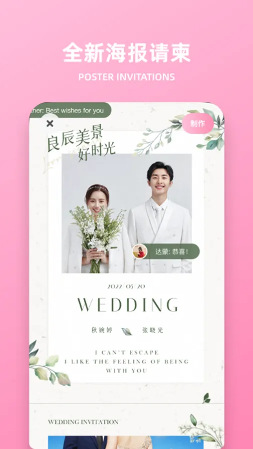 美丽的婚礼电子请柬:超多结婚请柬、电子请帖喜帖模板,轻松制作电子请帖,一键分享微信请柬到朋友圈。