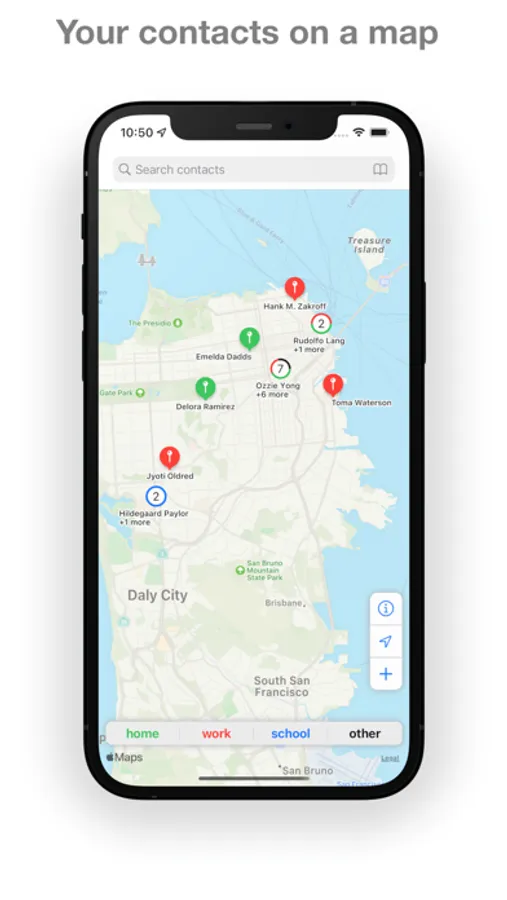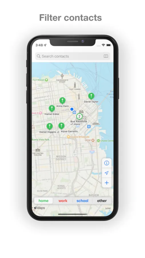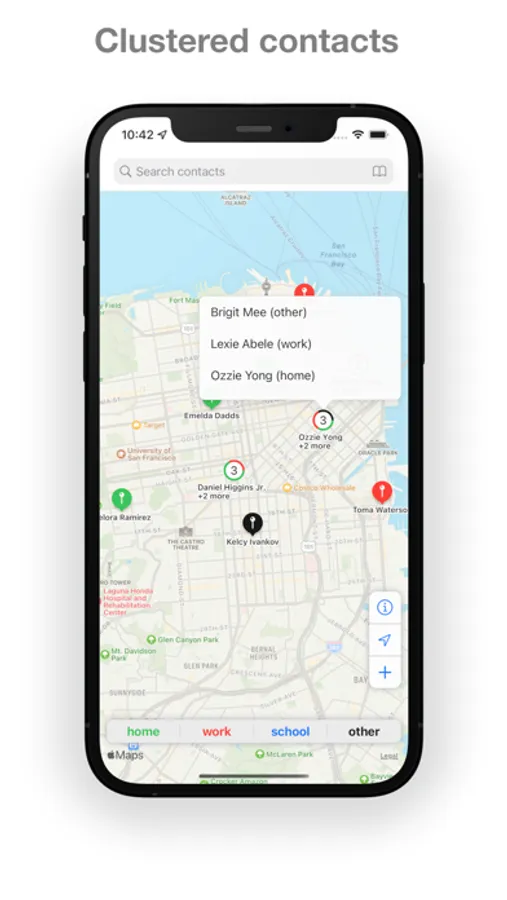 • Filter contacts by address label (e.g. "home", "work", "school", "other")