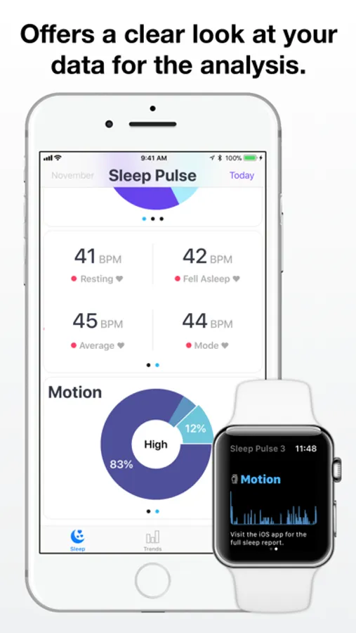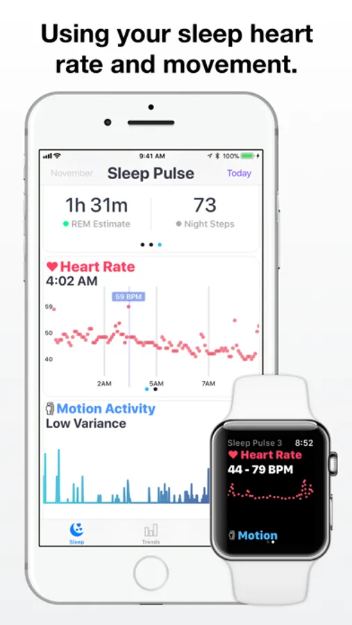 Track your sleep with your Apple Watch, Motion and Heart Rate for the complete picture.