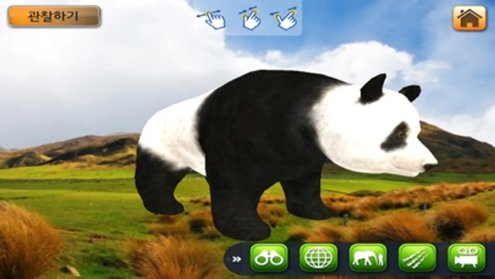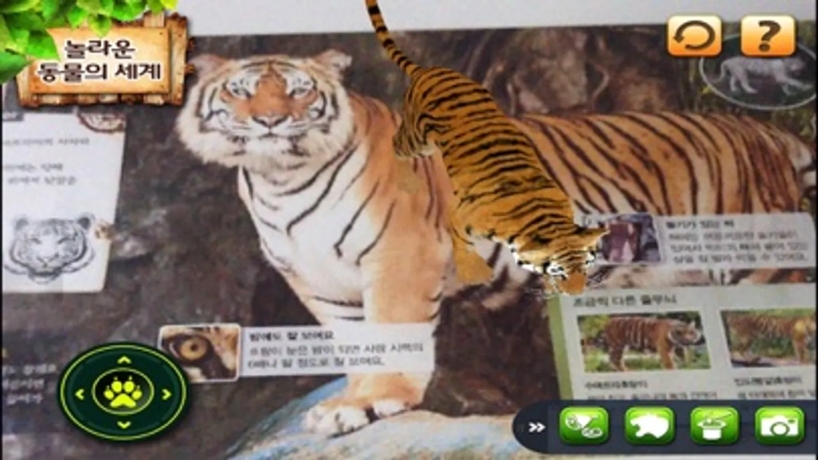 3. 블루래빗동물 어플리케이션 실행 후, 프린트 한 이미지 또는 PC 화면의 이미지를 카메라 화면으로 비추면 감상하실 수 있습니다.