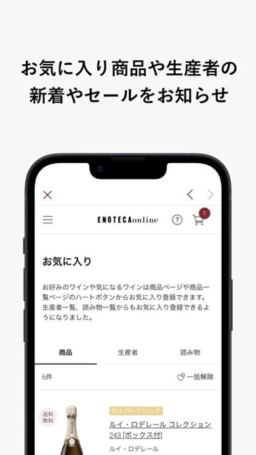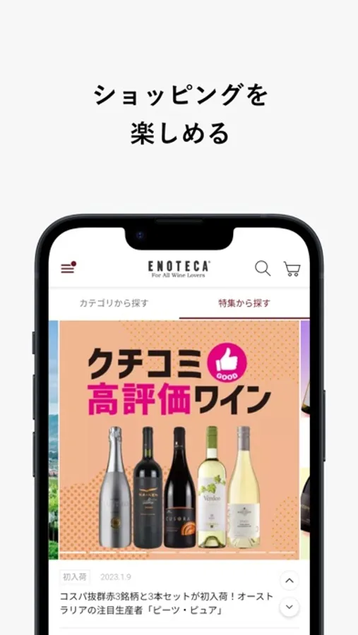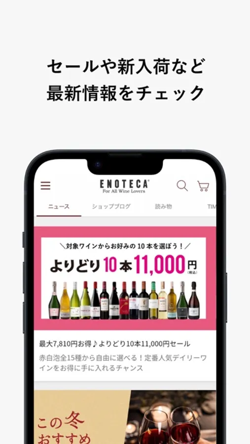 ワインの売り出し情報を毎日お届け。気になるワインはそのままご購入いただくことができます。一度ログインいただければ、アプリからはログインは不要でスムースにお買いものいただけます。