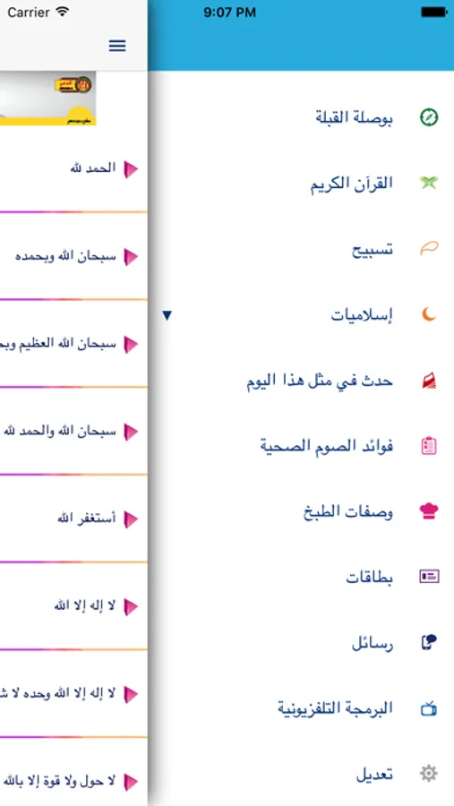 :الأقسام الرئيسية للتطبيق
