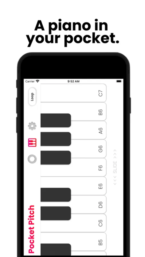 Pocket Pitch is a simple tool for singers who need to be able to quickly identify or play notes. This app combines a pitch pipe and piano so that you have two of the quintessential tools of a singer!