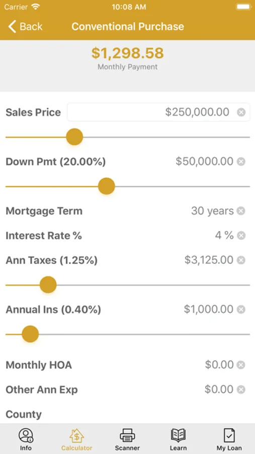 -Quickly and Simply calculate an affordable monthly mortgage payment, down payment and purchase price for your new home purchase.