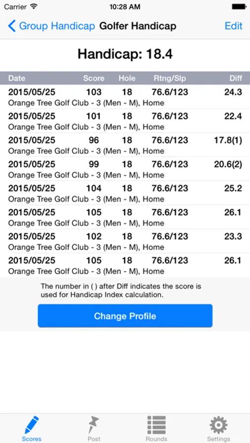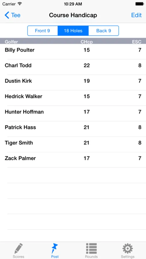 1. Manage handicap for unlimited number of golfers.