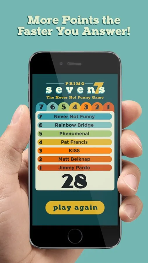 "Sevens" is the fast paced party game that will have you shouting, singing, and acting out as you try and get your teammates to guess the clue on the card! But do it fast, you only have 7 seconds for each clue!
