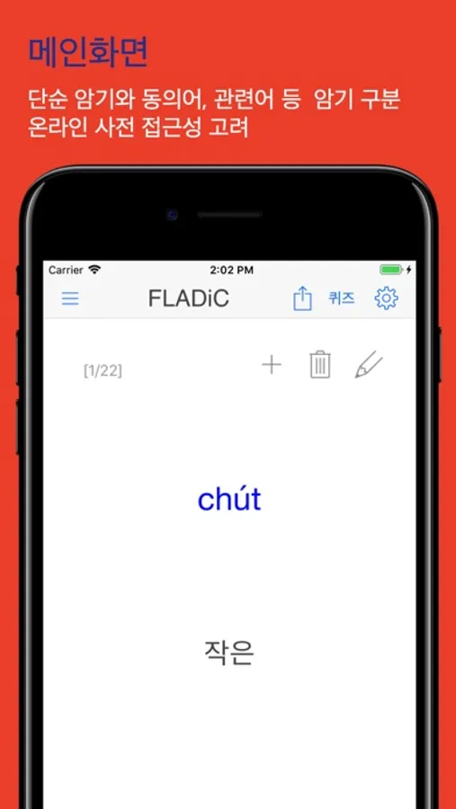 * 퀴즈를 활용한 복습(틀리면 미암기 단어로 자동 분류)
