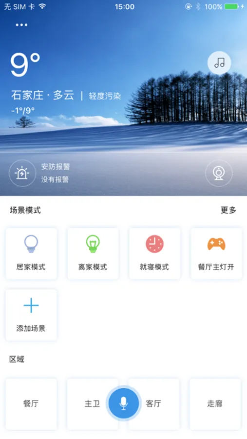 我们的应用程序可以通过自定义场景功能,一键设定各个点的报警设备的状态,从而即使在家的时候,家庭的边界区域任然是被保护中。而不需要繁琐的设定。