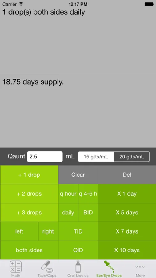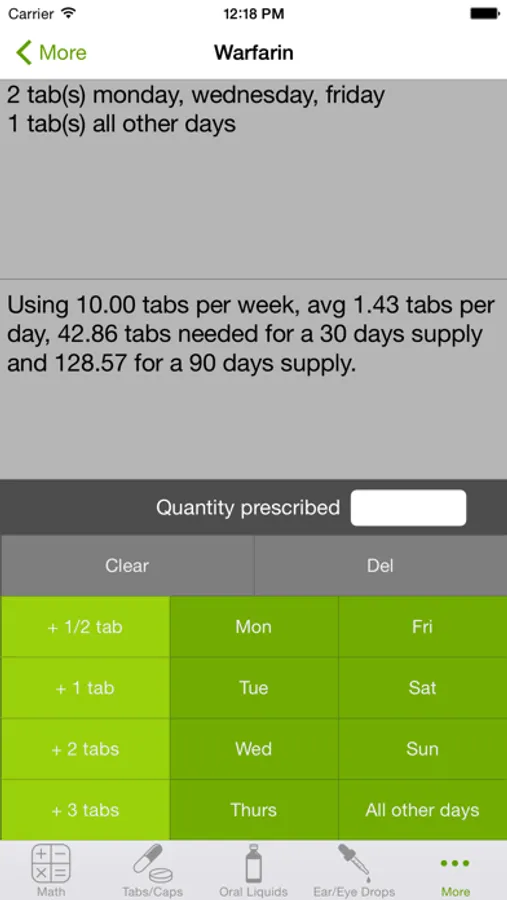 Calc Rx is an outpatient prescription calculator that makes determining dispense quantities and billable days supply fast and effortless. Simply tap in the sig (directions) and Calc Rx does the rest. Complex steroid tapers, warfarin regimens, ear/eye drops, liquids, and more are all a snap. Pharmacists, pharmacy techs, nurses, and prescribers will be amazed by the time saved by this useful little app!