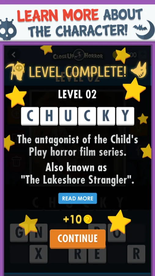 Close Up Horror is a free word quiz for horror fans, with hundreds of characters from popular movies and tv series! How many can you guess?