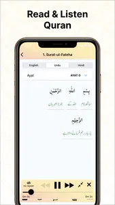 - Jump directly to any Ayah of your choice in any Surah of the Holy Quran and start reading from there.