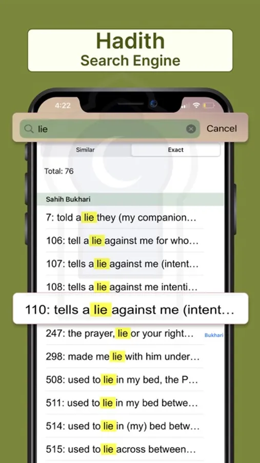 - Bookmark Ahadith to record your reading position or important Ahadith.