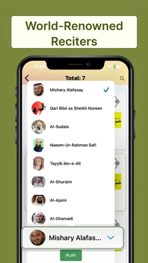 - Listen to Holy Quran's recitation from at least 12 world-renowned reciters.