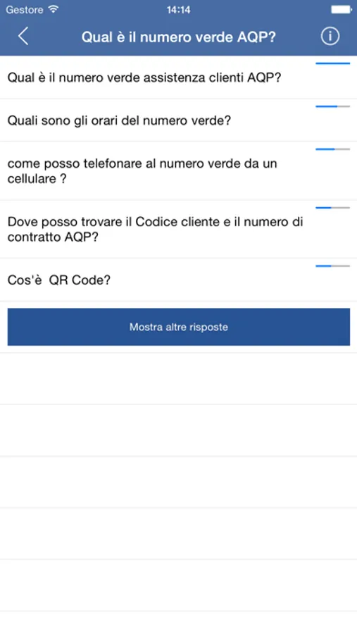Se non trovi alcuna domanda/informazione attinente alla tua richiesta, anche dopo aver cliccato il tasto in fondo alla pagina "Mostra altre risposte alla mia domanda" allora clicca su "Non trovo una risposta soddisfaciente", il team di Acquedotto Pugliese provvederà nell'ampliare la base di conoscenza per soddisfare anche per la tua domanda.