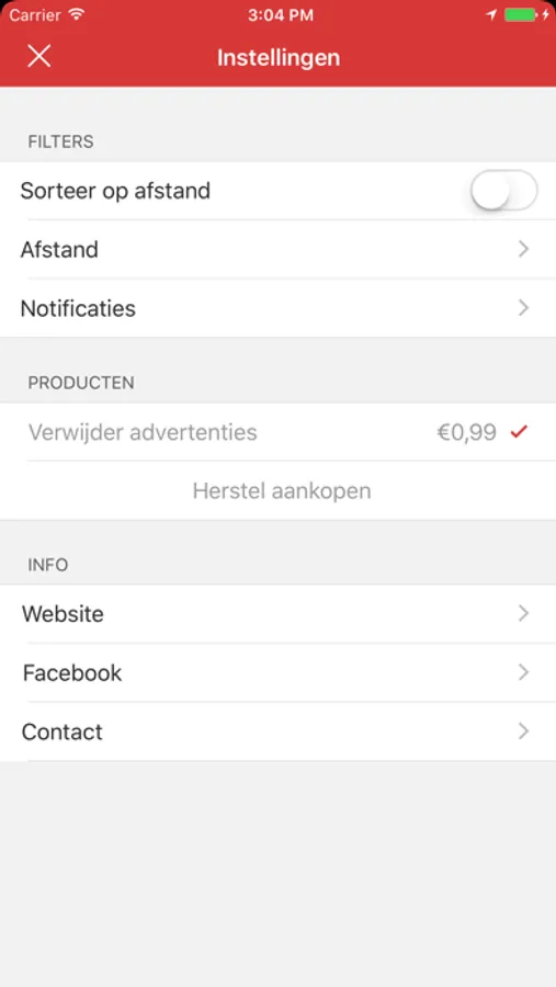 - Filter de controles binnen het overzicht binnen een bepaalde straal (km)