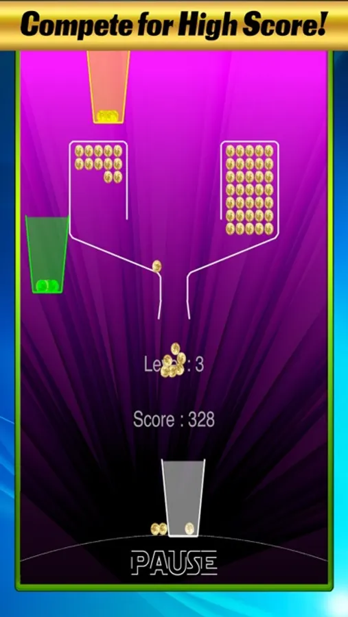 Gold Coin Cup is a fun simple addicting game! The object is fill your cup with as many gold coins as possible without missing along the way. The game starts with 100 gold coins and the game keeps going until you lose all of your coins or no cups are left to catch your coins.
