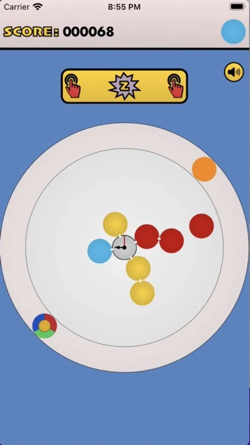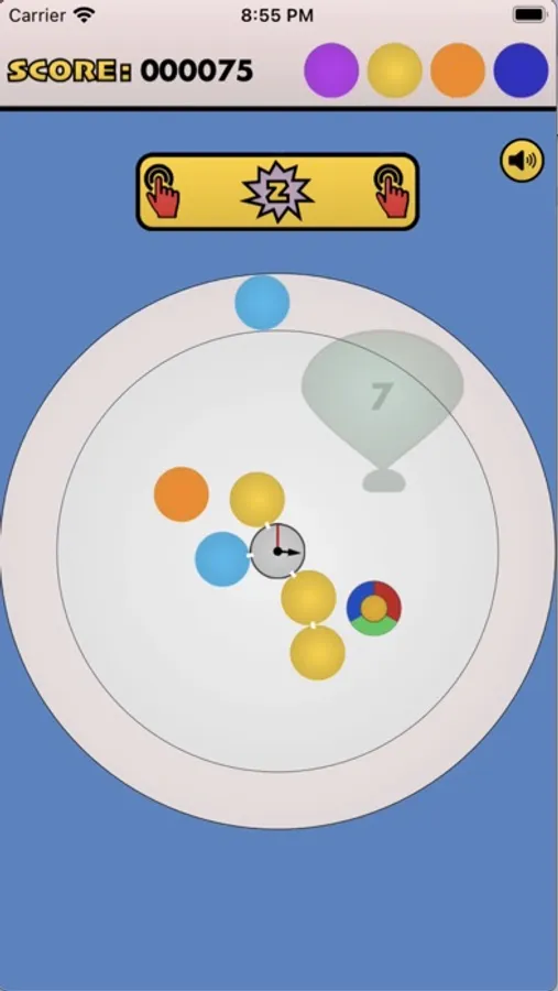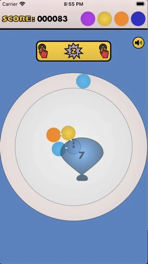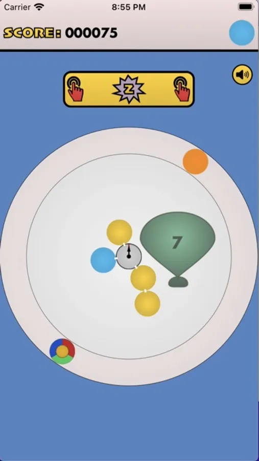 - press anywhere to shoot orbiting circles towards center