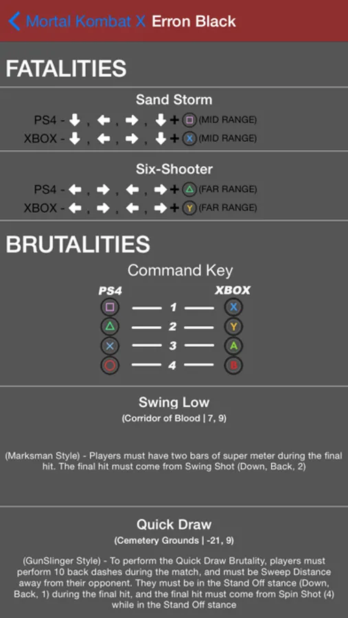 No need to pause the game to find out the Fatalities and the Brutalities of each character. This app will help players, play the game and have that move set side by side with them. Mini Guide that included all DLC players so far.