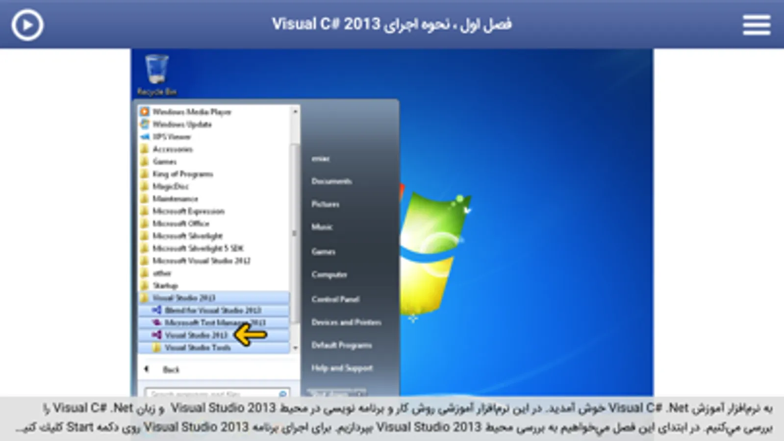 Visual C# .Net 2013 یک نرم افزار از سری Visual Studio .Net است که در نرم افزار آموزش Visual C# .Net 2013 به بررسی روش تولید نرم افزارهای تحت سیستم عامل ویندوز میپردازیم. برای تولید نرم افزارهای تحت وب با استفاده از Visual Studio به نرم افزار آموزش ASP.Net 2010 مراجعه نمائید.