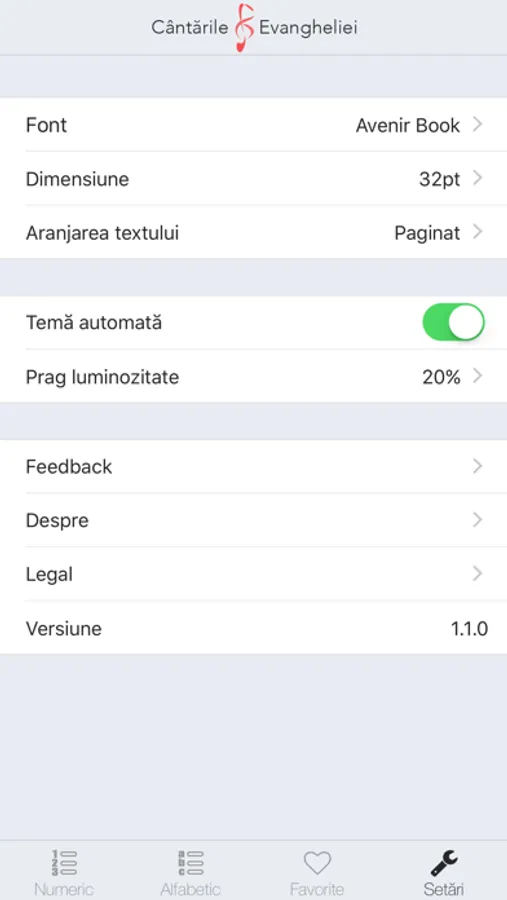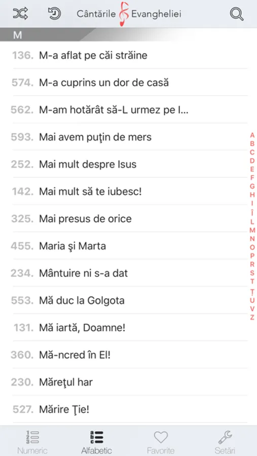 Aplicația conține textul complet al celor 601 cântări, completat de tonalitate si tempo. Cântările pot fi ordonate Numeric, Alfabetic sau adăugate într-o listă separată ca Favorite. O cântare poate fi găsită rapid căutând după număr, titlu sau conținut (iOS 8) si afișată pe tot ecranul prin dublu-click.