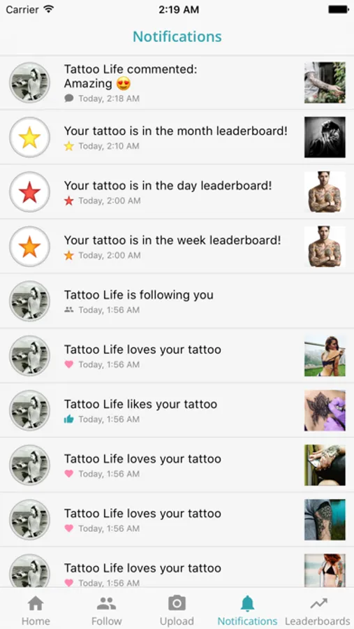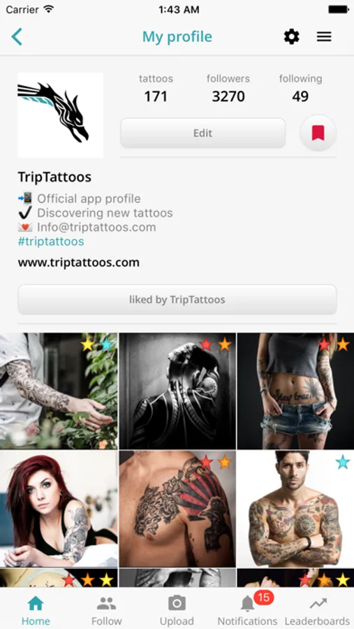 Discover new beautiful tattoos all around the world and upload yours! Follow users and rate each tattoo as desired. You can check leaderboards to see the top rated tattoos of the day, week and month always updated!