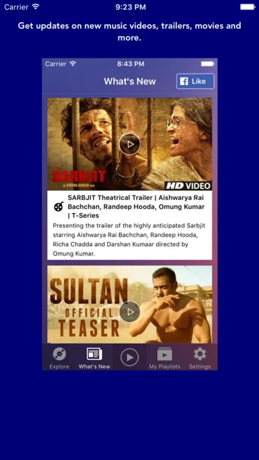 Not only can you listen to Bollywood songs you can also watch their videos in HD.