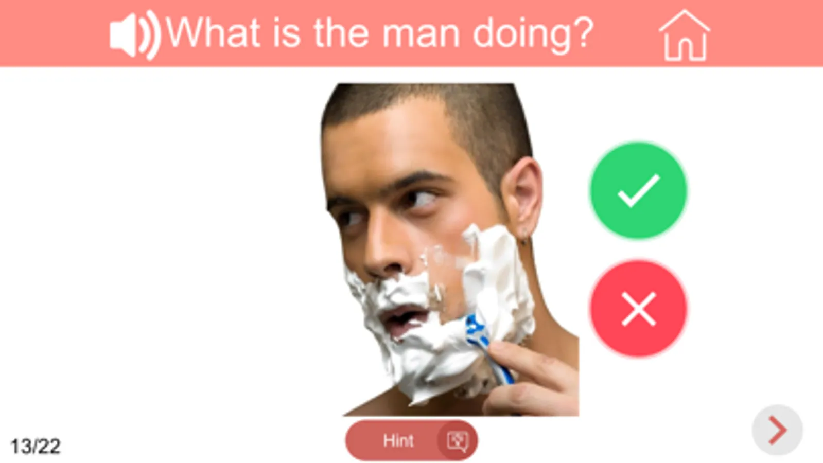 Repeat: This activity uses an evidence-based treatment approach called Errorless Learning. The app repeats the name of the verb 3 times and asks the user to repeat it 3 times.