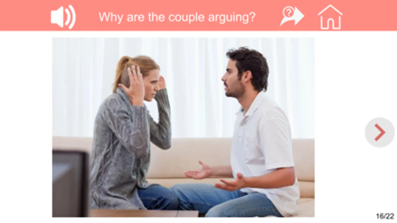 Elaborate: This activity is based on a treatment approach called Response Elaboration Therapy. It uses 'Wh' questions (Who, What, Where, Why) to help the user to expand their answers when describing the picture.
