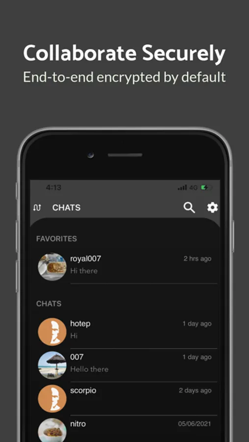 The team mode option allows users to securely collaborate in 1-on-1 or Group conversations and comes with powerful access control functionalities. There is no limit to the number of people that can be added to a group.