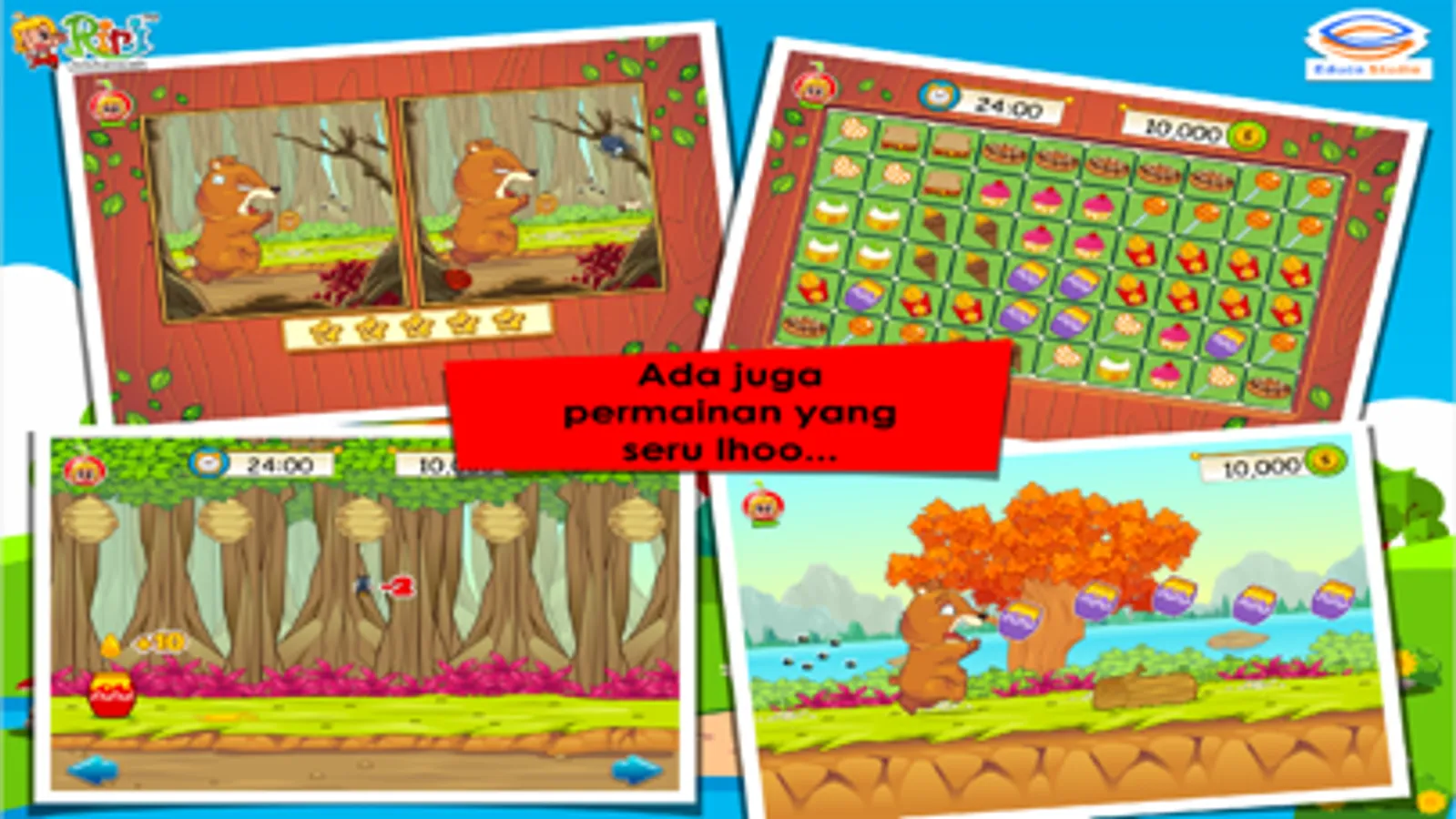 RIRI (Cerita Anak Interaktif & Game Edukasi) hadir dengan kisah baru : RIRI - KISAH BERUANG DAN LEBAH MADU.