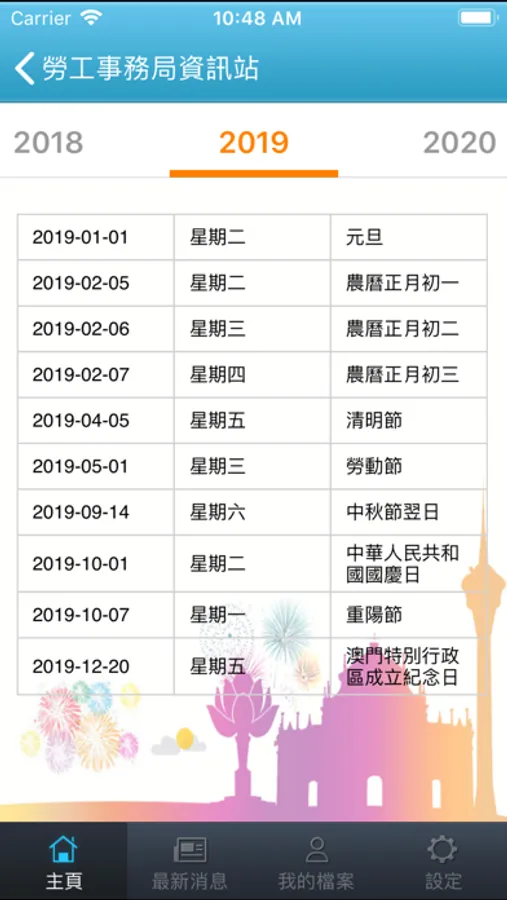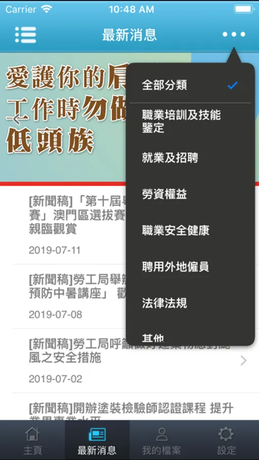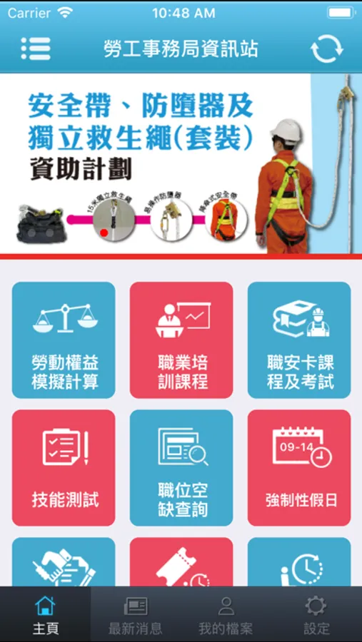 - 個人化資訊:我的檔案,使用者可查閱已於勞工事務局登記的服務狀態及資訊;