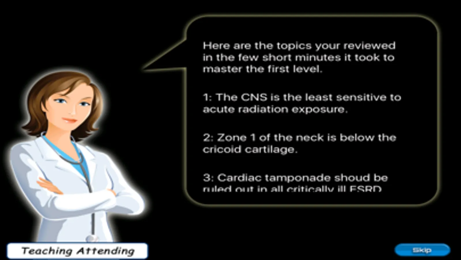 •Spaced learning- High-yield board facts are reinforced by your Teaching Attending after completing each level (need 70% correct to pass a level).
