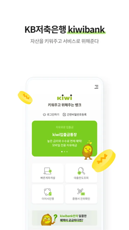 자산을 키워주고 서비스로 위해주는 KB저축은행의 키위뱅크(kiwibank)를 경험해보세요.